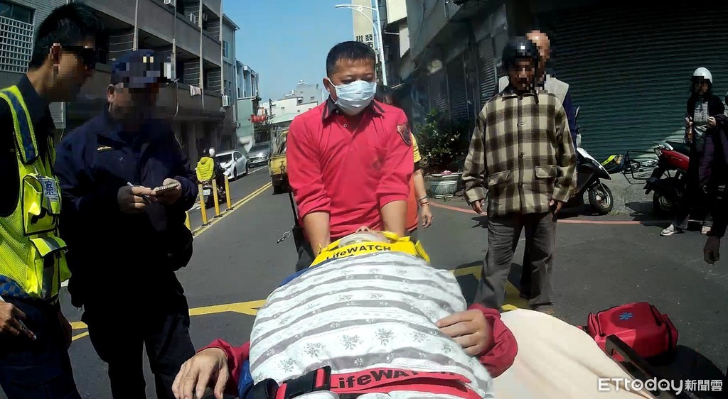 ▲兩名7旬老翁互相擦撞,民眾協助脫困送醫。(圖/讀者提供,下同)