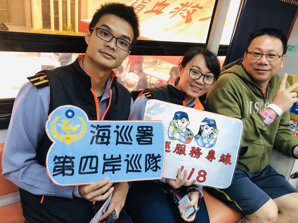 第四岸巡隊表,海巡署平日除打擊各項走私、偷渡等不法情事外,對於為民服務工作及公益活動的參加也都熱心投入,希望能夠幫助社會上更多需要服務的人;另外呼籲民眾若發現任何非法情事,皆可透過海巡署「118海巡報案系統」提供全國民眾免付費緊急救難及報案單一窗口請求協助,以共同維護居民生命財產安全。