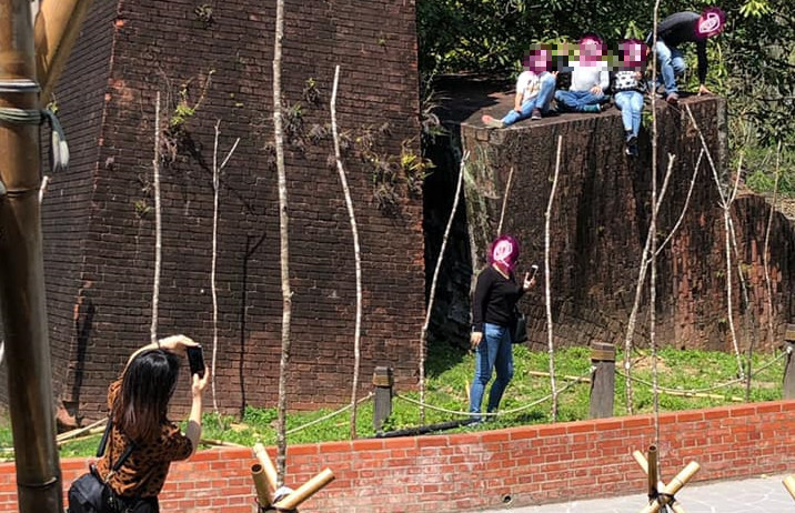 ▲現場民眾輪流攀爬古蹟拍照。(圖/翻攝自Facebook/爆廢公社)