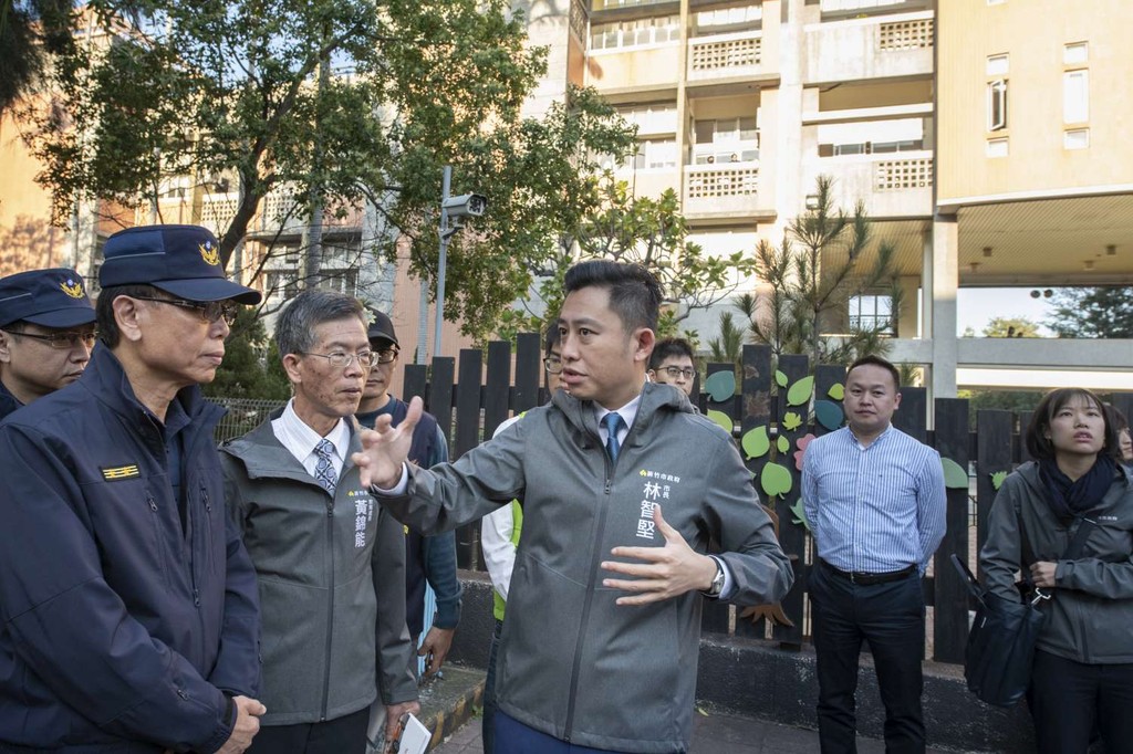 今(25)日一早,林智堅在教育處長黃錦能、警察局長鄧學鑫、西門國小校長陳進豐陪同下,視察西門國小周邊警察疏導交通的狀況,以及學校入口的體溫篩檢區、校內健康中心防疫區。