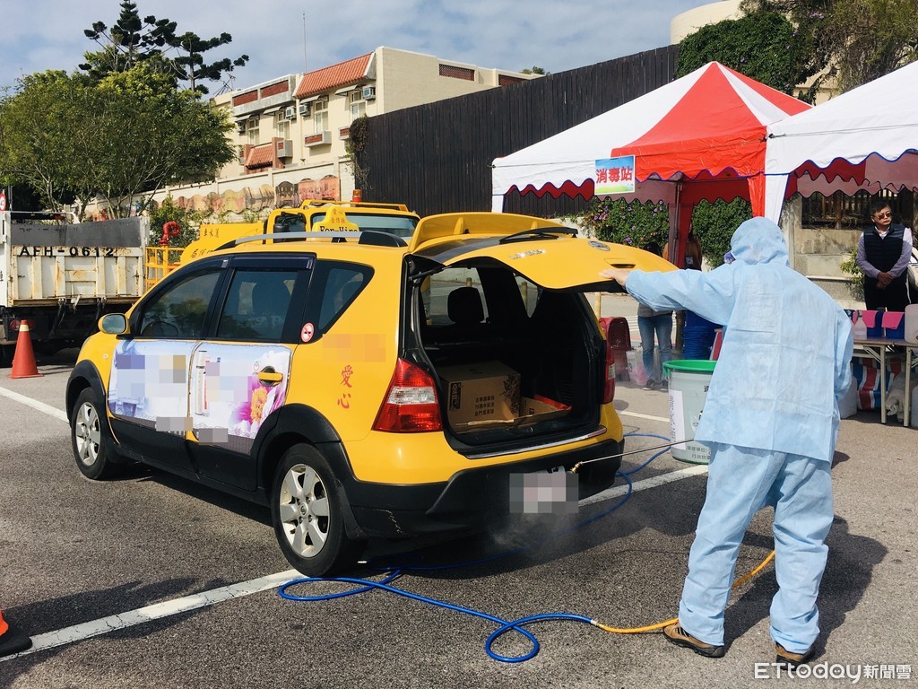 ▲▼金門縣政府為加強防疫設立計程車免費消毒站。(圖/記者吳奕靖翻攝)