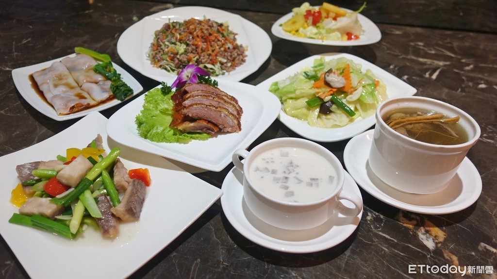 三好國際酒店1樓藍朵茶餐廳,售價680元,規劃為1人份套餐,養生健康套餐共8道料理,櫻花蝦16穀米、鮮人參燉雞湯外,還有蔬菓沙拉、現炒食蔬與招牌港點等美味,讓民眾均衡飲食,免預約,即能攝取有益健康的營養成分,讓身體更健康。