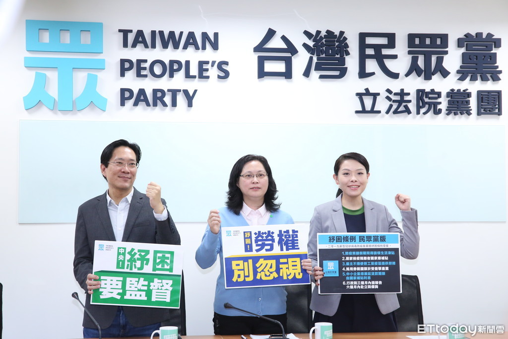 ▲台灣民眾黨團記者會,張其祿、賴香伶、高虹安回應紓困條例。(圖/記者屠惠剛攝,下同)