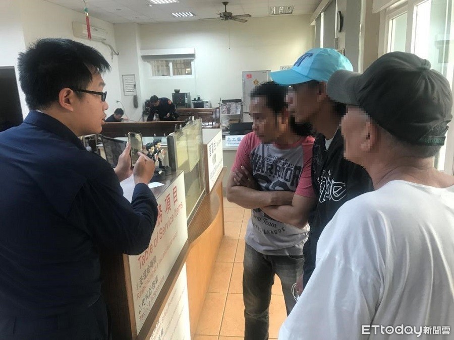 ▲員警拿出手機開啟電子地圖,請兩名菲籍乘客指出要前去的地點,這才發現要去的地點是高雄「前鎮」而不是「茄萣」漁港,原來菲籍男子中文發音不是很標準還有一點口音,「前鎮」二字被司機誤聽成「茄萣」二字。(圖/記者翁進忠翻攝)
