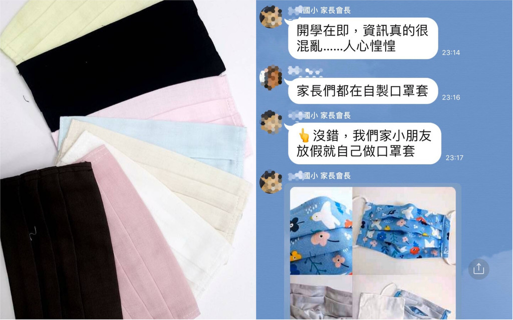 王欣儀接獲到許多家長的陳情,坊間販賣的口罩套一個售價從幾十塊到5、6百塊不等,且有許多不同材質(如棉布、紗布、防潑水布、超細纖維布等),但口罩套的防護力是否真的足夠?口罩套到底要怎麼使用才能達到防疫效果?口罩套內的一般外科口罩何時須更換?家長們都莫衷一是,也不見政府出來清楚說明。