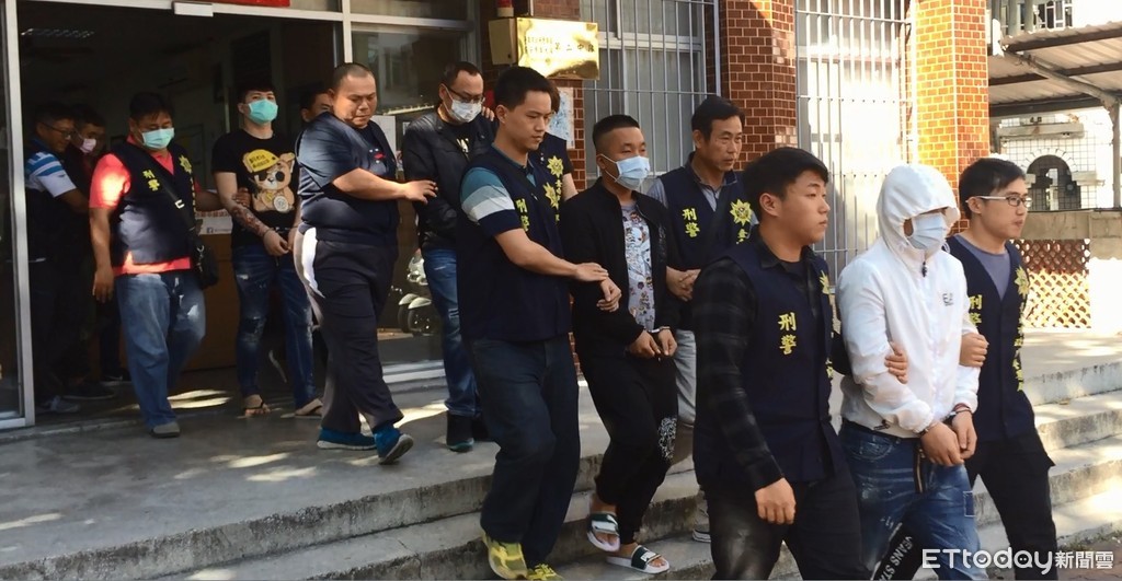 ▲台南市警方破獲竹聯幫台南分堂程姓男子為首的暴力犯罪集團,逮捕22人及起獲刀械等犯罪工具一批。(圖/記者林悅翻攝,下同)