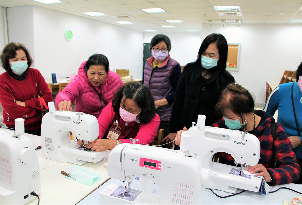 金山分館主任蕭千惠說,疫情未趨緩,又逢新一波強冷空氣來襲,對行動不便的老人家來說,出門不方便也無法久站排隊買口罩,因此金山分館擅長縫紉的館員簡麗珠,特別邀集志工一起趕製了150個布口罩,準備提供給不便外出購買口罩,且有需要的地方長者們上醫院看診等應急使用。另外,圖書館也義務教學,教大家自己DIY動手做布口罩,並且免費提供縫紉機具,方便家裡沒有縫紉機的地方鄉親們使用。