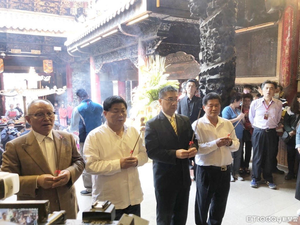 ▲徐國勇抵達鎮瀾宮,向媽祖上香請安。(圖/記者鄧木卿攝)