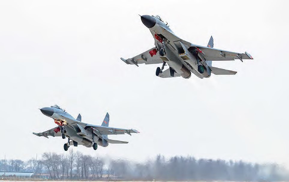 ▲解放軍空軍再次組織轟-6K編隊進行繞台任務,殲-11B/BS首次擔任護航戰鬥機。(圖/翻攝自空軍發布)