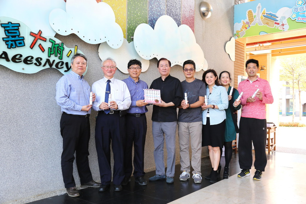 嘉大附小陳明聰校長表示,感謝嘉大艾群校長的支持與生科院陳瑞祥院長的指導,以及嘉大校友總會張永霖理事長贊助,贈送實用且超越市售等級的乾洗手凝露給附小師生共同防疫,希望附小的師生都能在健康安全的環境中快樂學習。