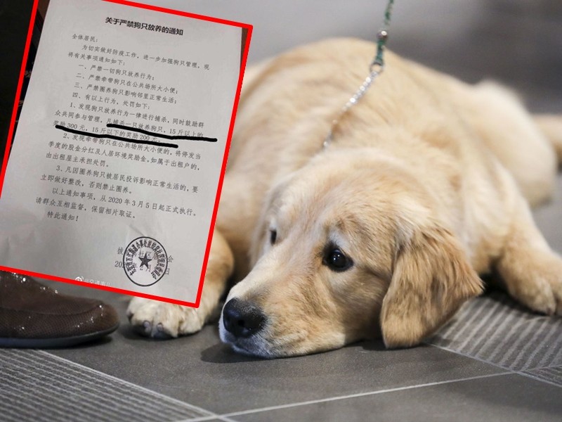 大陸爆發新冠肺炎(COVID-19)後,不少社區推出「禁止遛狗令」。近日網路流傳一份來自大陸東莞社區通告,看得讓人頭皮發麻!管委會揚言住戶如果放養寵物將被活活打死,還號召鄰居參與,可獲得300到200不等的獎金。(單位;人民幣,同下)