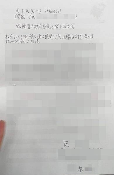謝謝那位會講日語的員警,幫我找回遺落的手機!桃園警分局埔子派出所1日收到一封來自日本的感謝信,信中女子「泉」表示去(2019)年12月底來台旅遊,因手機遺失到派出所報案,幸所內有一名會說日語的員警翻譯及協助,順利完成報案程序、找回失物。埔子所表示,會說日語的員警是該所偵查佐朱宸衛,收到「泉」的感謝信很是歡喜。