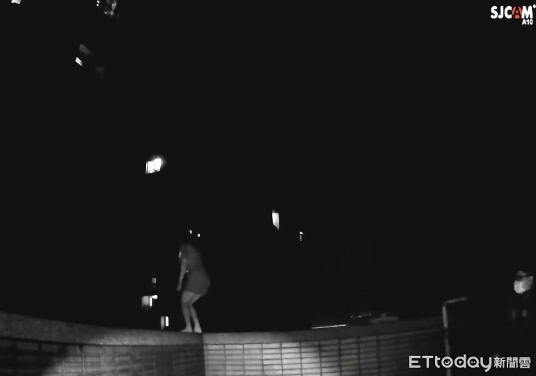 ▲身穿連身衣裙的黃女站在頂樓女兒牆打算跳樓尋短,所幸遭警方迅速拉下挽回一命。(圖/記者張君豪翻攝)
