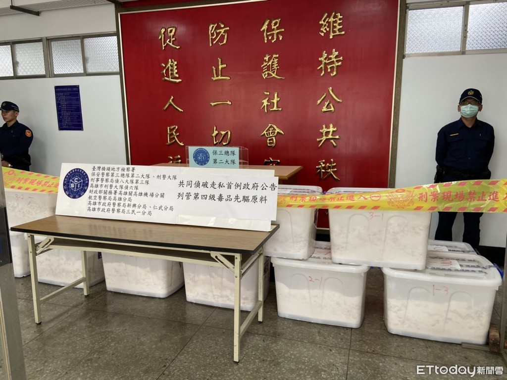 橋頭地檢署日前接獲線報,指出有販毒集團利用空運的方式運送製毒原料,專案小組成立後開始過濾航班資料,在日以繼夜的追查下,果然發現一批申報「二氧化鈦」的貨品有異,檢警於是不動聲色跟監埋伏,最後總算在楠梓區攔下販毒集團,查獲496公斤的「三級丁氧羰基去甲基愷他命」,訊後將主嫌吳姓男子依毒品罪送辦,並在破案當晚聲請羈押獲准。