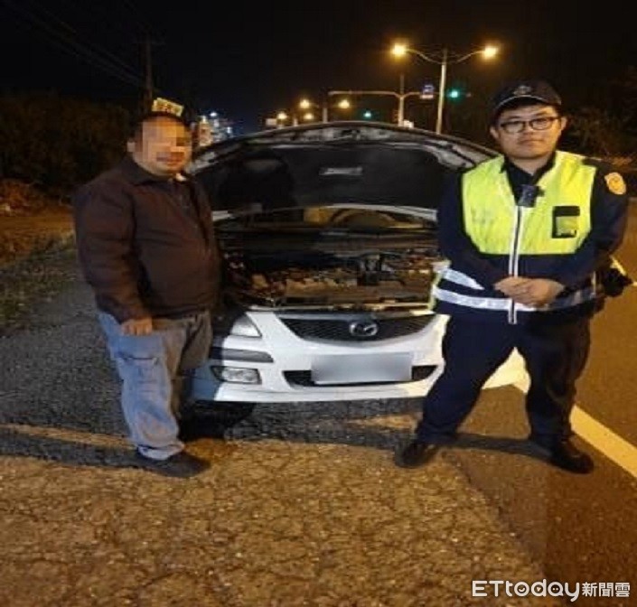 ▲屏東縣枋寮警分局加祿派出所員警及時協助陳姓駕駛人排除故障車,讓他很感激 。(圖/記者陳崑福翻攝)