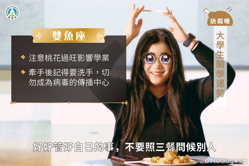 ▲教育部模仿星座專家分析運勢,並提醒大學生做好防疫。(圖/教育部提供)