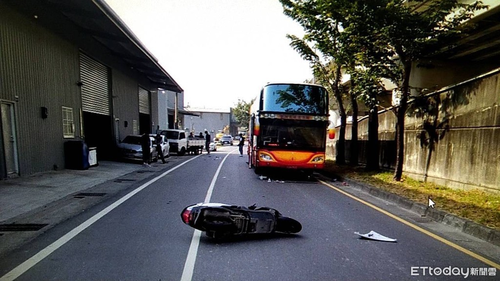 ▲台中一名騎士撞到貨車後彈飛倒地,慘遭遊覽車輾斃(圖/記者白珈陽翻攝)