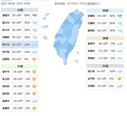 另外,中央氣象局提醒,21日東北季風稍減弱,台灣北部及東半部地區有短暫雨,其他地區及澎湖、金門、馬祖為多雲到晴的天氣。