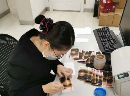 由於受損的鈔票已經無法通過機器辨別,銀行人員只好採取人工比對的方式,經過鑑定真偽、清點以及確認之後,一共讓李婦換回人民幣3125元。行員解釋,現階段是疫情防控的特殊時期,民眾難免會擔心錢幣不乾淨,但只要是從金融機構提領出來的,基本上都很乾淨,可以放心使用。