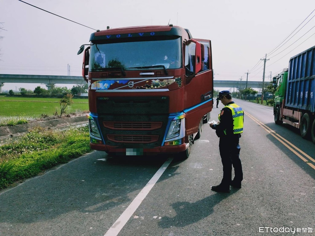 ▲台南市白河分局執行取締砂石車專案勤務,共計舉發砂石車違規超載3件、查獲竊盜通緝犯1名。(圖/記者林悅翻攝,下同)