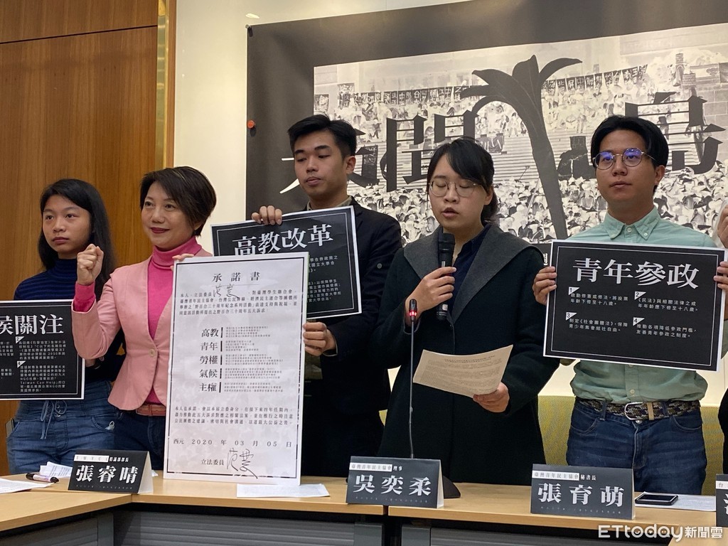 台灣青年民主協會秘書長張育萌針對18歲公民權表示,應讓十八歲的年輕人有相符的權利與義務,並落實未來世代的代表權,因此提出訴求,1、投票年齡下修至十八歲,2、《民法》成年年齡下修至十八歲,3、制定《社會團體法》、保障青少年結社自由。