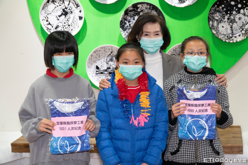 ▲新生小5林婕妤(上圖右2)幸運成為宜蘭國中「職探夢工廠」體驗第5千人。(圖/記者游芳男翻攝,下同)