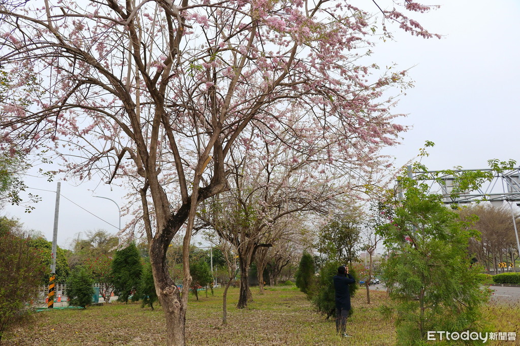 建設處表示,南洋櫻每年約在2月底3月初開花,花期1~2周,南洋櫻枝枒上掛滿成串淡粉色的小花朵,空氣中還會飄散淡雅的清香,市民朋友不用跑遠,在世賢路、北香湖公園也可以賞櫻。