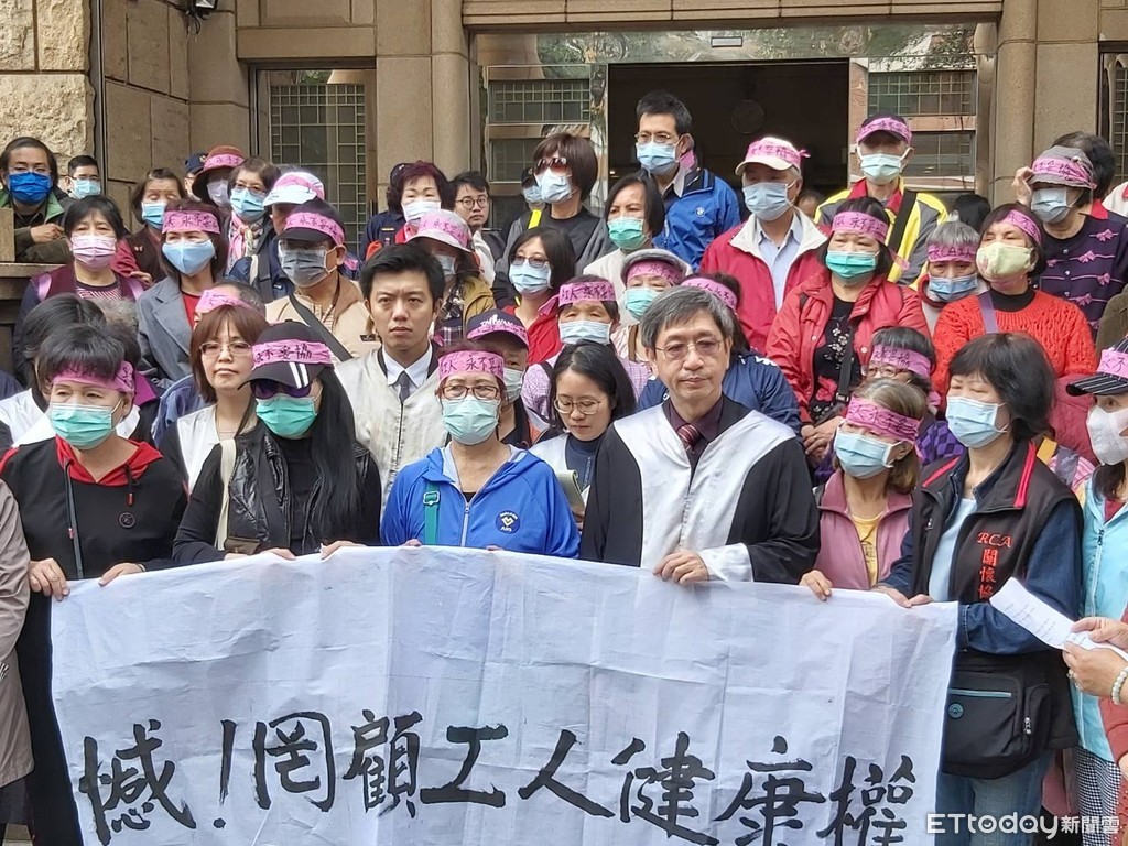 ▼RCA案更一審宣判,因高院不願迅速公開判決結果,受害員工一開始拉紅布條慶祝勝利。(圖/記者吳銘峯攝)