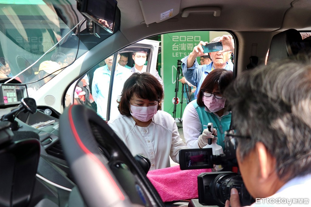 市長黃敏惠及立法委員王美惠也戴上口罩及手套,示範消毒門把及椅套,希望讓民眾在搭乘計程車時更為安心。