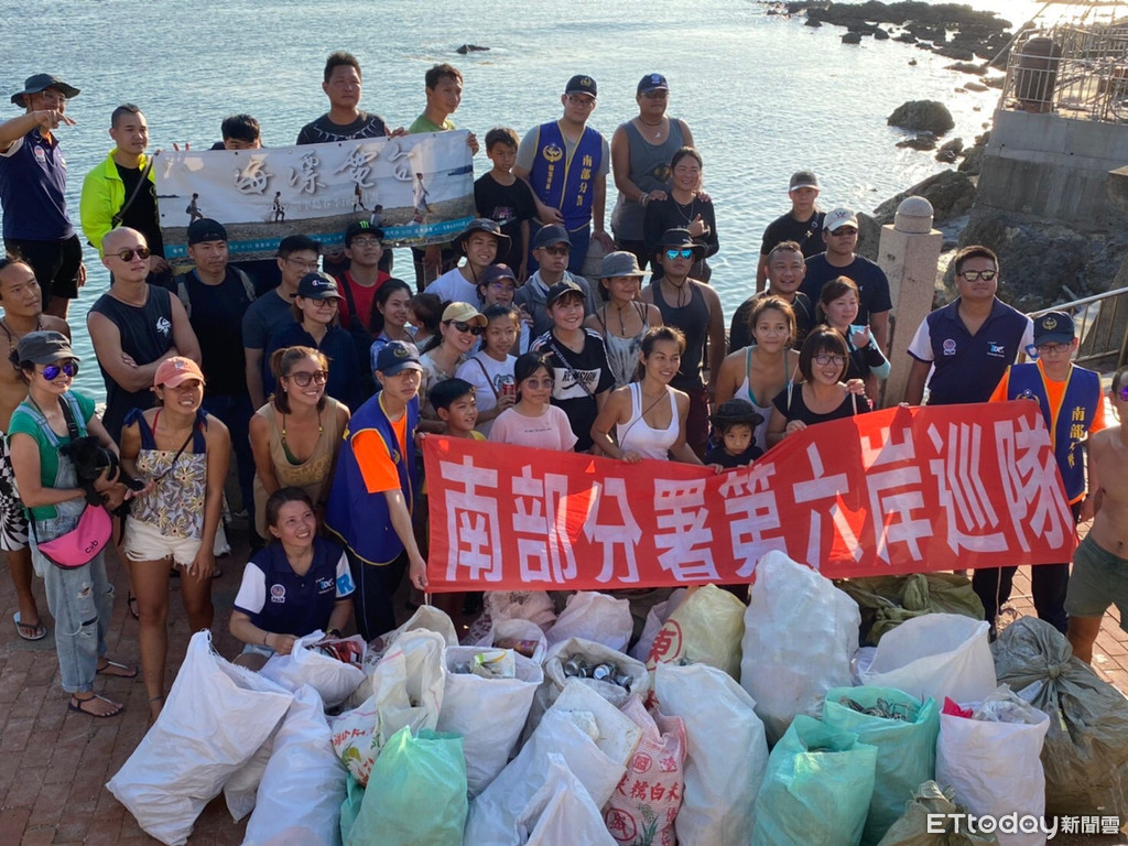 ▲海巡署南部分署第六岸巡隊與「屏東縣海漂文化交流協會」於恆春半島萬里桐辦理淨灘 。(圖/記者陳崑福翻攝,以下同)