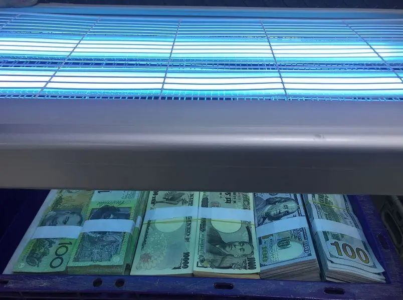 第三,全副武裝,清點封存:重點防疫保障單位的現金,經照射紫外線燈全面消毒後,員工會身穿防護服,佩戴口罩、手套、護目鏡全副武裝進行清點。清點後,現金單獨封存保管,待疫情結束後統一根據人民銀行的要求進行處理。