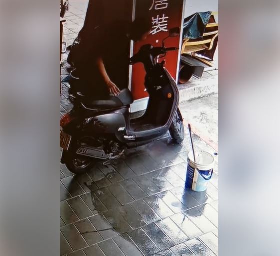 監視器拍下,女子拉開口罩後,先是吐一口口水在手上,接著對著自己機車塗抹,後座扶手、龍頭、儀表板及腳踏板通通沒放過,臨走之前又直接多吐了好幾口,沒想到塗抹的竟然是自己的機車。
