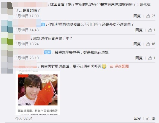據《三立新聞》報導,一名內部人士證實,劉樂妍目前的確住在某醫院加護病房,生病原因和住院時間不是很清楚,但知道她和新冠肺炎患者有過接觸史,至於院方則為了保護病人隱私不願透露。