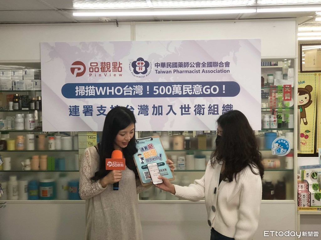 ▲藥師公會號召500萬人連署挺台灣加入WHO。(圖/記者陳涵茵攝,下同。)