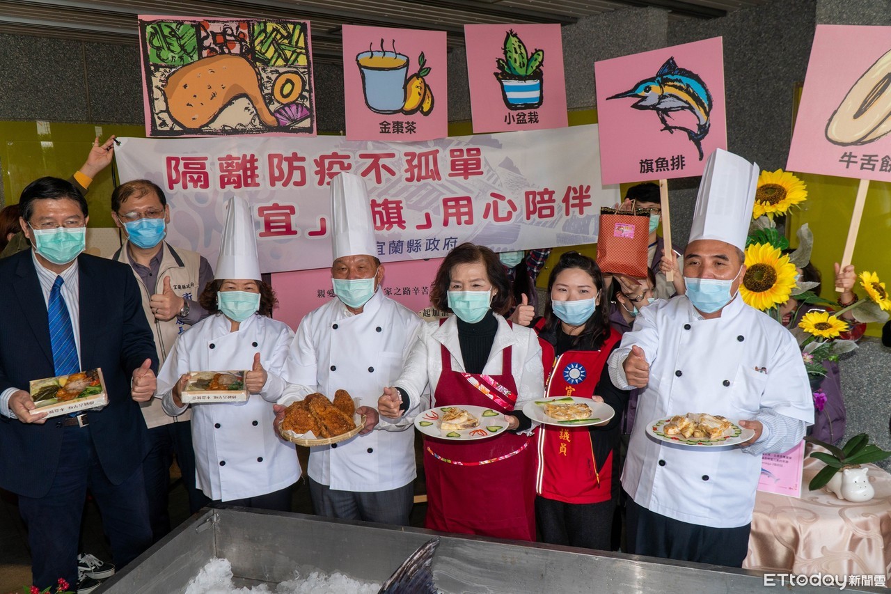 宜縣府表示,日前在蘭陽檢疫所接受集中隔離的國人同胞,已經許久沒能回到台灣,為了陪伴大家度過隔離期,縣府與蘇澳區漁會合作為防疫便當加菜,在13日送進防疫所的便當中,增加一道「旗魚排」;同時送上宜蘭在地的暖心小禮,包括企業贊助的牛舌餅,以及礁溪特產金棗茶包、療癒植栽、水果及縣長署名的問候小卡。