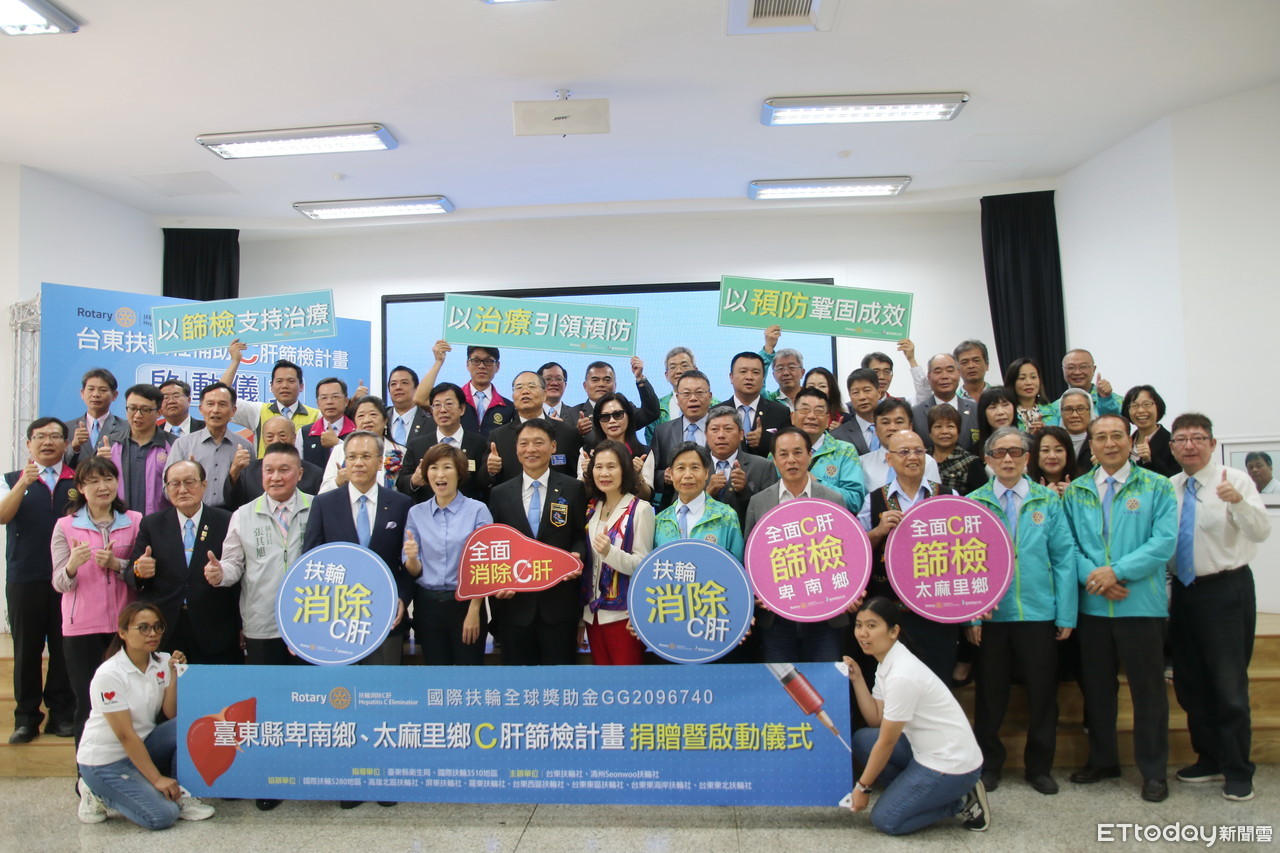 「扶輪捐贈C肝篩檢,台東讓您更安心」,台東縣「慢性肝病及肝硬化」之標準化死亡率為全國3倍,台東扶輪社支持國家消除C肝政策,特捐贈300萬元的C肝篩檢計畫,此一篩檢計畫將於風險潛勢最高卑南鄉、太麻里鄉進行擴大篩檢,預計可以篩檢40歲以上民眾5600案。饒縣長請鄉親捲袖驗B、C肝,花一點時間檢驗便可遠離「肝」苦。