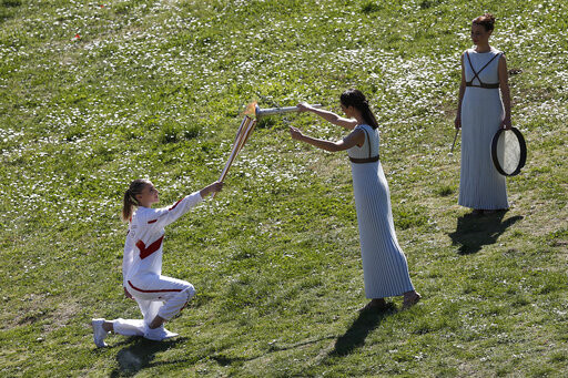 根據《華盛頓郵報》報導,聖火點燃儀式12日在奧運發源地赫拉神廟舉行,由希臘女演員喬吉亞(Xanthi Georgiou)利用凹面鏡匯聚陽光點燃聖火,並傳給第一位聖火接力棒,希臘射擊選手安娜(Anna Korakaki)。同時,安娜也是史上第一位聖火接力跑第一棒的女性。