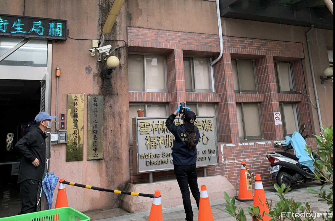▲雲林縣社會處社會身心障礙福利中心發生墜樓疑外,警方獲報趕抵現場,拉起封鎖線。(圖/記者蔡佩旻攝)