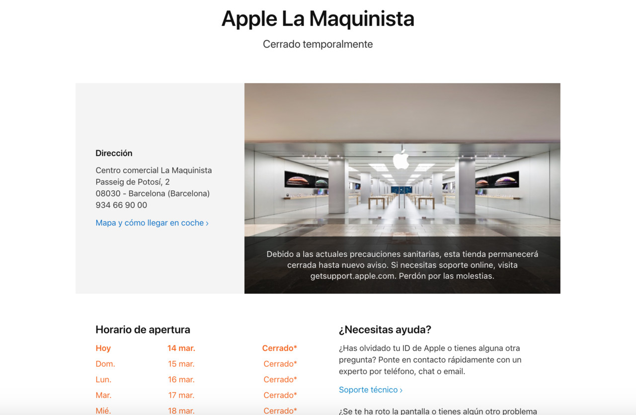 ▲根據Apple西班牙官網中顯示,當地所有門市都將都將關閉。(圖/翻攝自Apple西班牙官網)