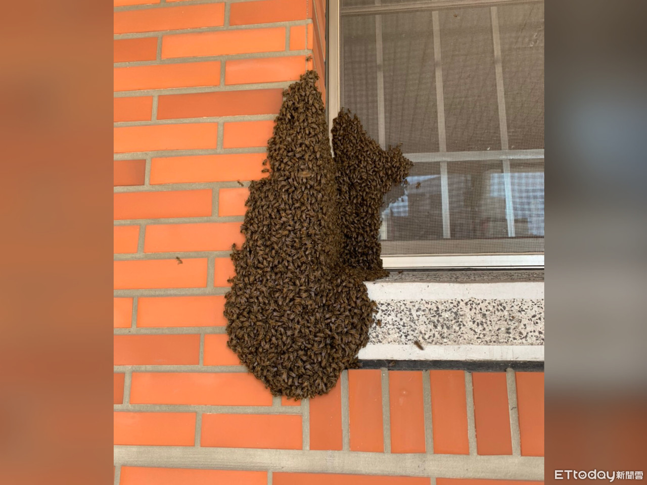 ▲大群蜜蜂聚集在彰化縣警察局外牆,相當嚇人。(圖/民眾提供)