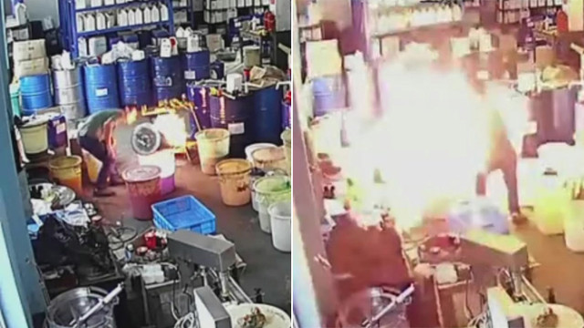 官方近日也公布了事發當下的監視錄影,從畫面中可以發現,孫姓員工在將混合物倒入塑料桶時的動作相當隨便,且發現起火後的第一反應就是「用嘴吹」,接著又「拿扇子搧風」,然後又「拿扇子打火」,還出去取了「一手掌的水」想滅火,所有作為都沒有讓火勢轉小,反而導致火越燒越來越大,蔓延到整間工廠。