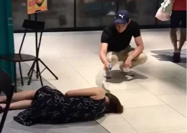 ▲女子在商場暈倒卻沒人敢上前攙扶。(圖/翻攝自微博,下同)