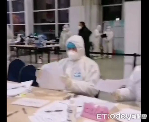▼境外旅客入京統一到國展檢疫,有專人指定填寫健康表格。(圖/台商 吳先生提供)