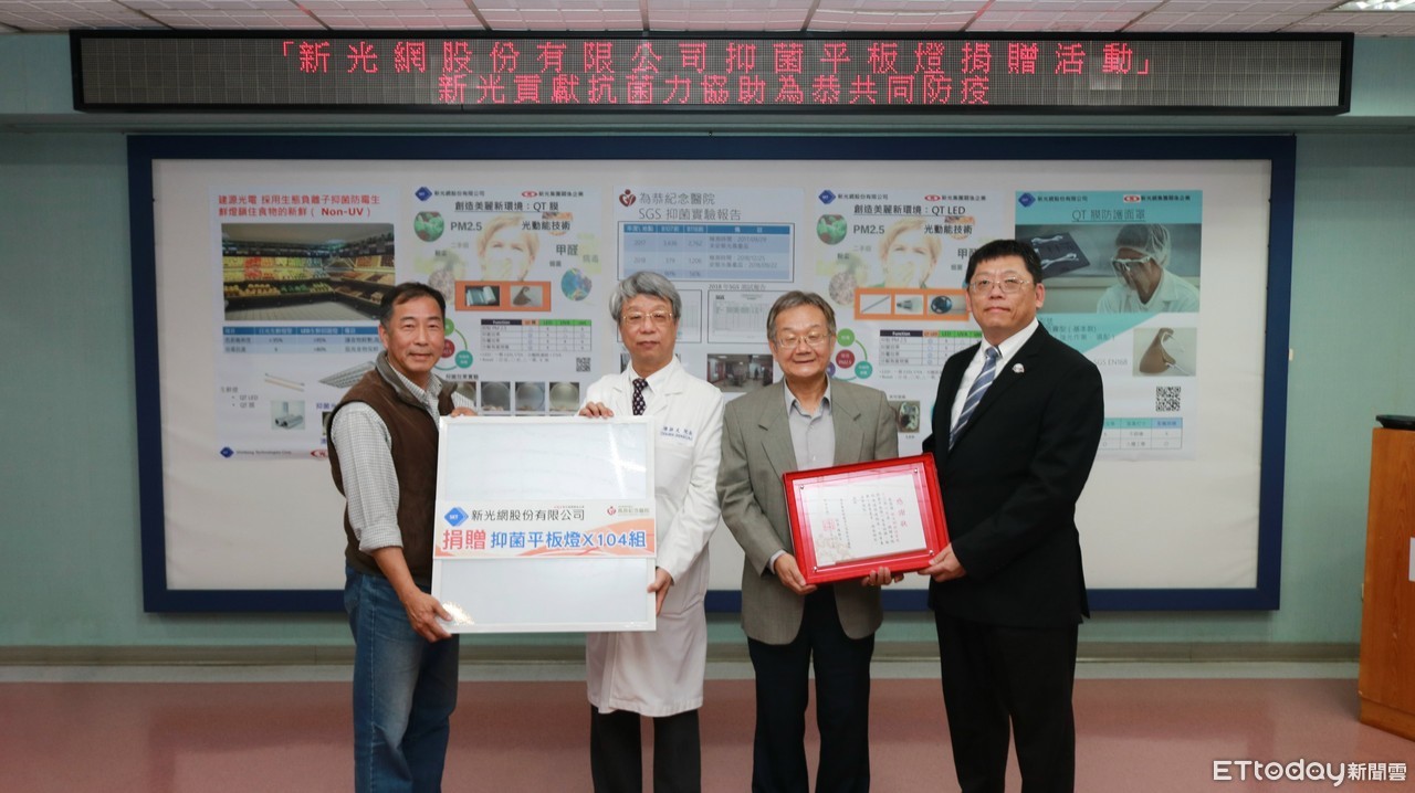 因應肺炎疫情持續不斷,新光合纖集團新光網股份有限公司捐贈抑菌平板燈104盞給為恭醫療財團法人為恭紀念醫院,將安裝於急診室使用,期望對於防疫上盡棉薄之力,為精進空氣及環境品質改善而努力。