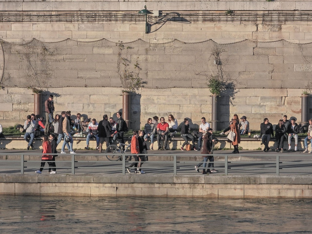 截至3月15日,法國國內新冠肺炎病例確修人數逾5400人,因病死亡人數增加至127人。不過,當天在巴黎市區內仍有不少民眾不在乎政府的警告,悠然在公園及塞納河畔聚會、野餐、享受好天氣,市場中也是遊人如織。