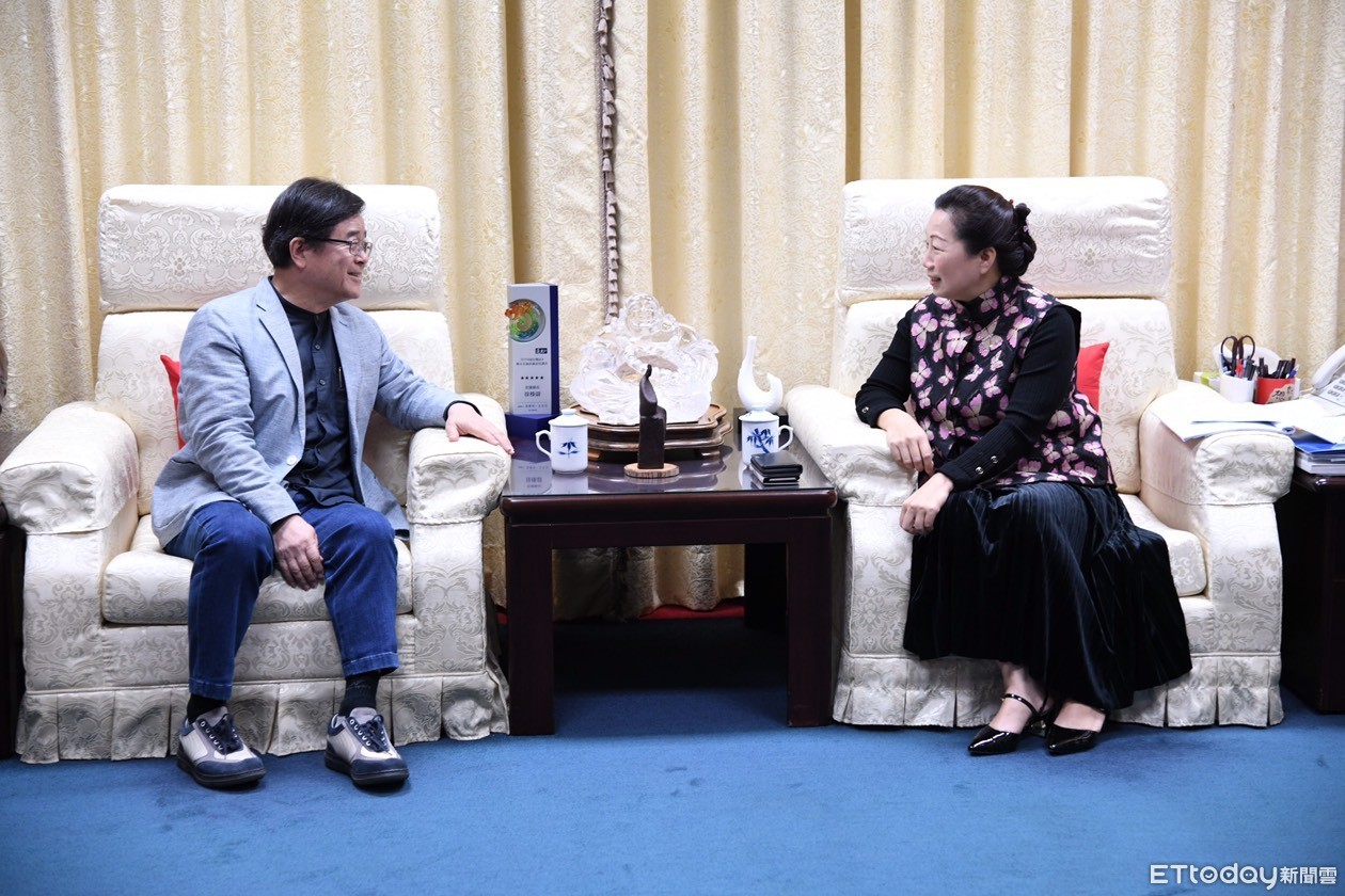 ▲書法大師周良敦(左)拜會花蓮縣長徐榛蔚,商討於花蓮舉辦全國書法比賽之構想。(圖/花蓮縣政府提供,下同)