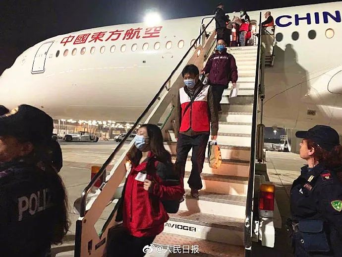 由大陸衛健委和中國紅十字會組成的9人專家組,自上海攜帶31噸醫療物資(含ICU病房設備、醫療防護用品、抗病毒藥劑等)於當地時間12日飛抵羅馬菲烏米奇諾機場,支援義大利新冠肺炎疫情防控工作,也是大陸支援伊朗、伊拉克後,派出的第三支專家團隊。