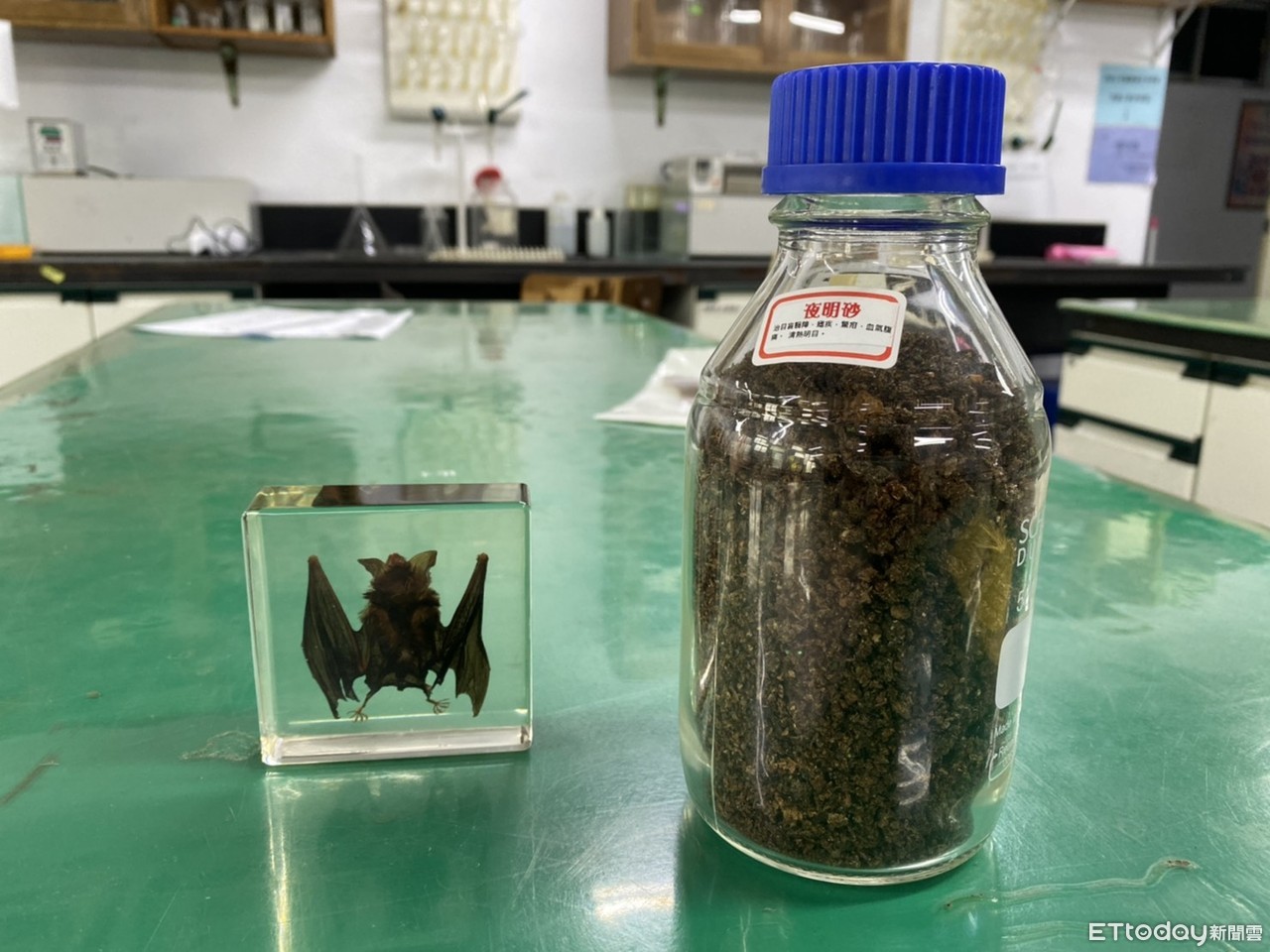 ▲蝙蝠標本及蝙蝠糞便。(圖/記者崔至雲攝)