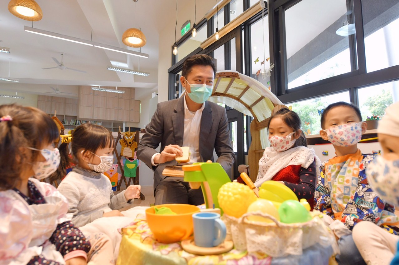 林智堅今日與幼兒一起玩起扮家家酒、教孩子學寫字以及捏麵團,現場互動溫馨有趣;他表示,盼透過「平價」、「優質」與「健康」三大主軸的教保服務,建構完善的公幼體系,他上任以來到明(110)年預計共將增加至1440個平價的公共化幼兒園名額,六年來更投入超過3億,包含興建幼兒園新校舍以及大幅改善新竹市公立幼兒園硬體與教學環境,以「幼兒為本」的理念設計、汰換園所老舊設施設備,建構優質的學習空間;此外,也逐步為各校建立中央廚房,為孩子的飲食健康做最安全的把關。