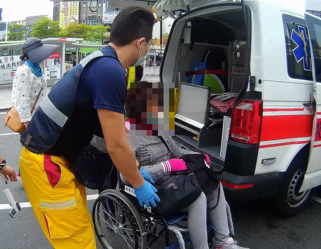 救護人員到達現場時,79歲蘇姓女患者已由站務人員協助推輪椅至汽機車臨時接送區,隨即為蘇姓患者實施初步評估,其意識尚清楚,蘇姓患者媳婦表示,自己與婆婆至車站大廳等候搭車時,婆婆卻突然一陣無力,頭暈倒地,不久後恢復意識,但表示有胸悶不適情形。